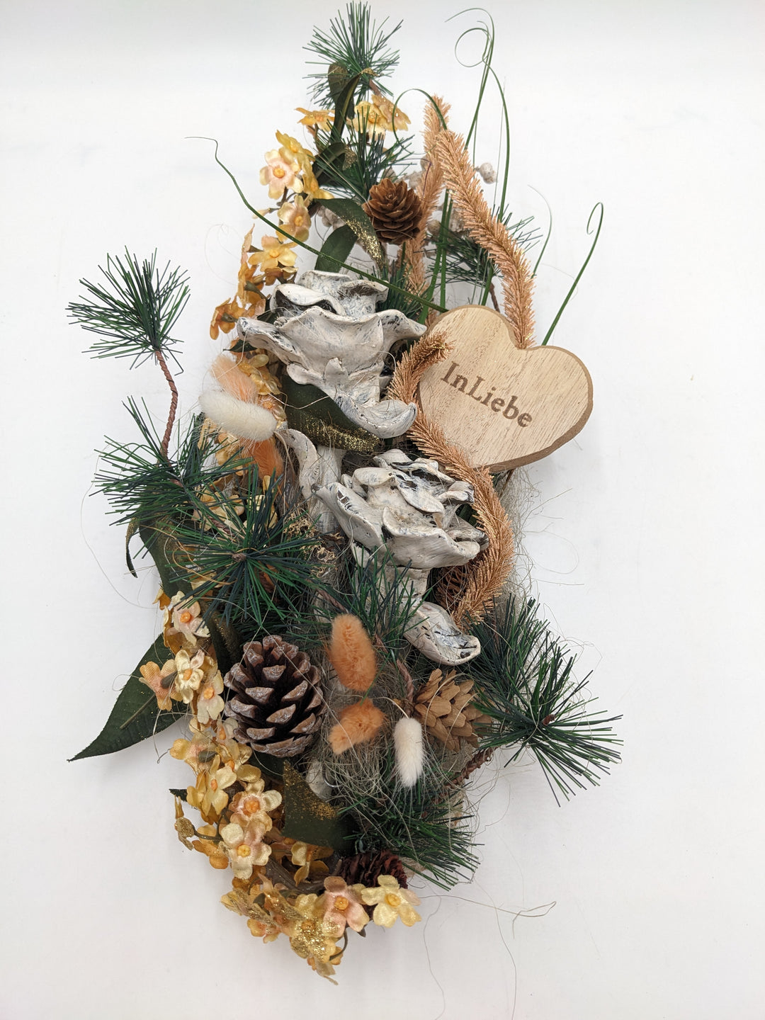 Trauergesteck Grabgesteck Herz In Liebe Blüten Tanne creme grün
