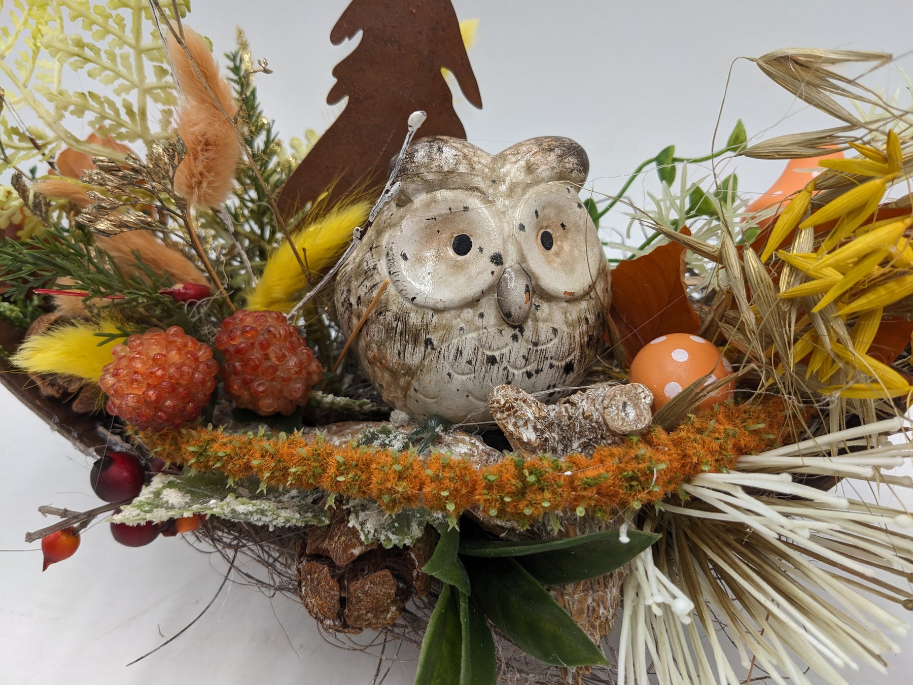 Herbstgesteck Eule Rosttanne orange
