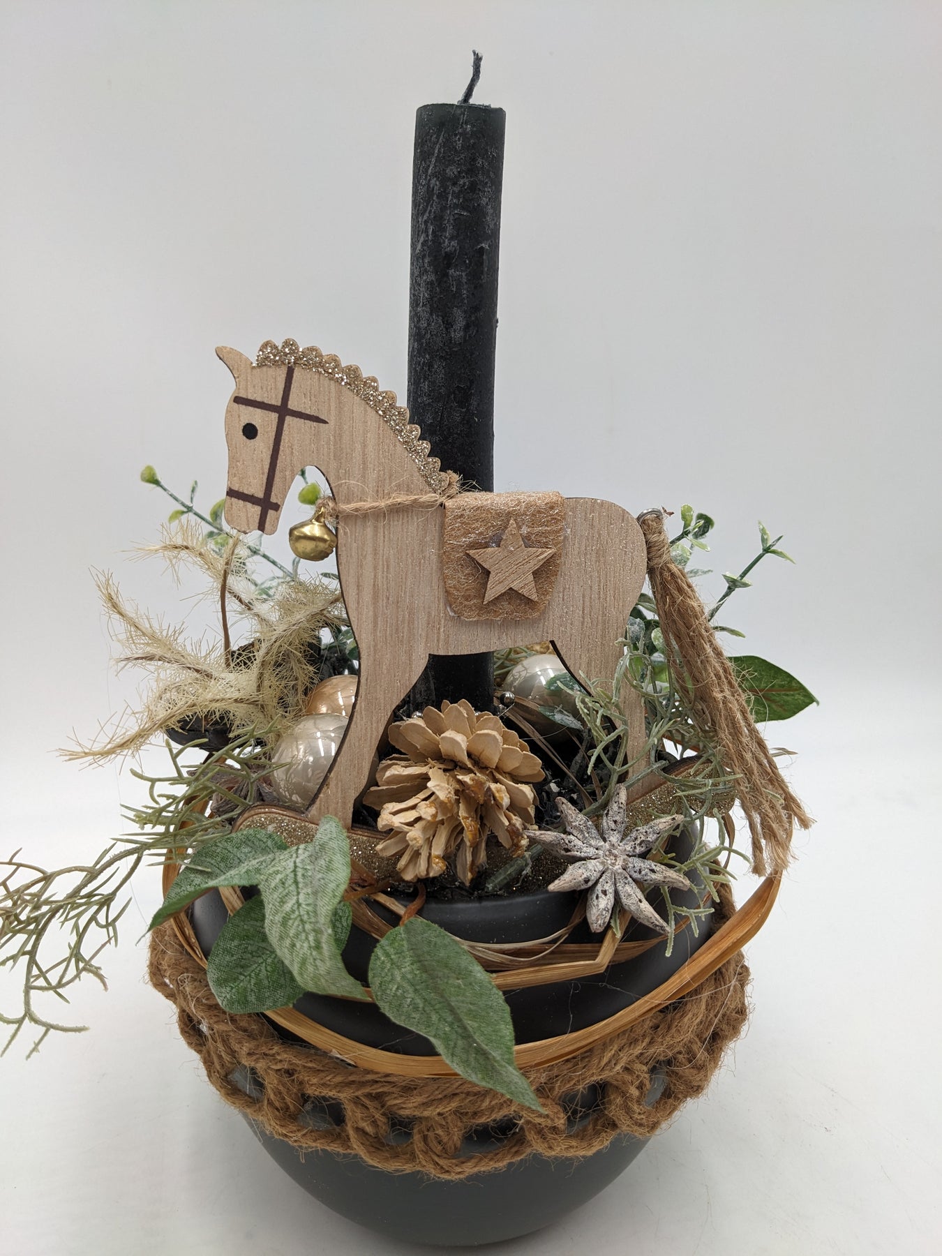 Weihnachtsgesteck Kugel Anis Schaukelpferd schwarz