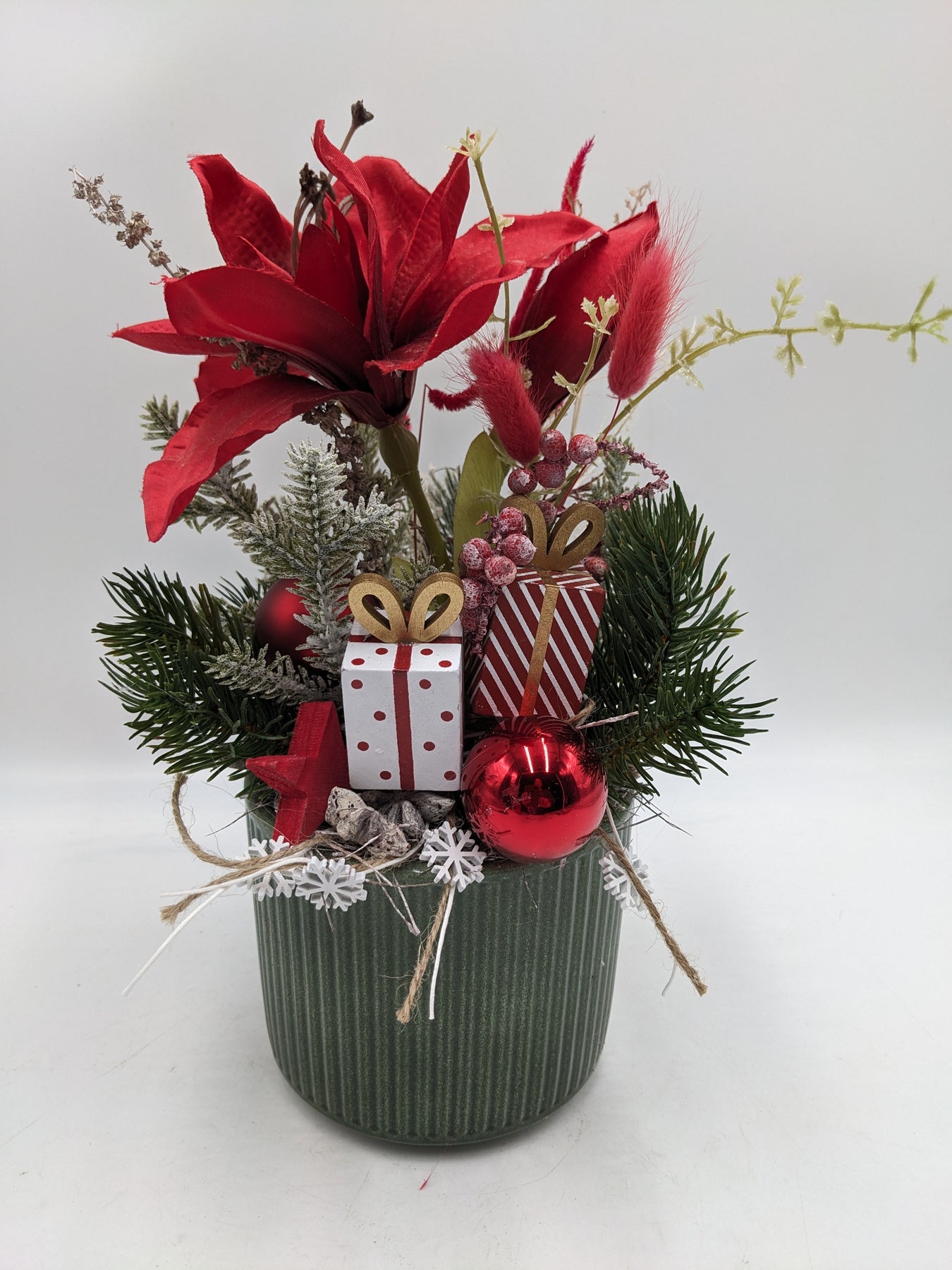 Weihnachtsgesteck Kugel Geschenk Amaryllis rot
