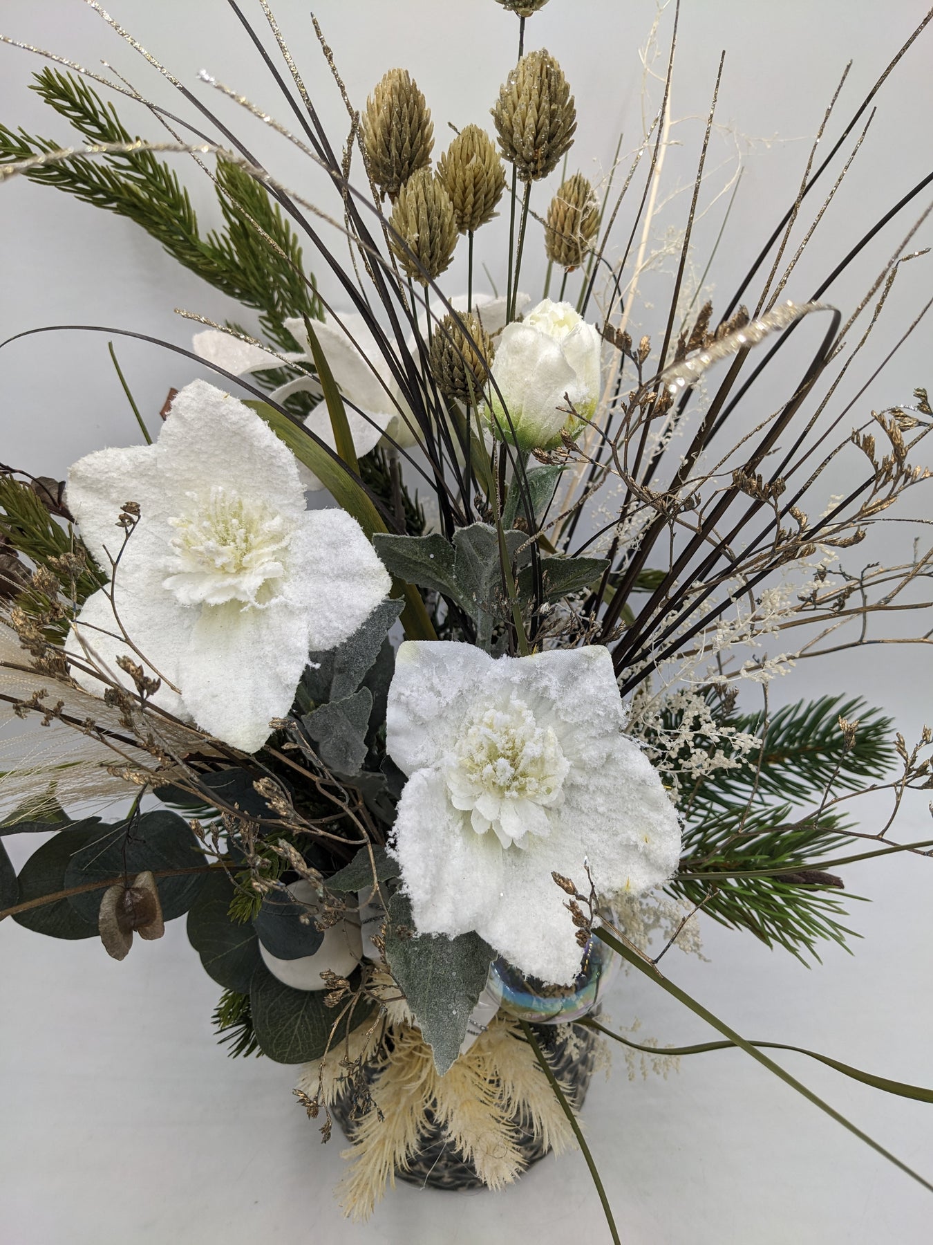Weihnachtsgesteck Kugel Geschenk Christrose weiß