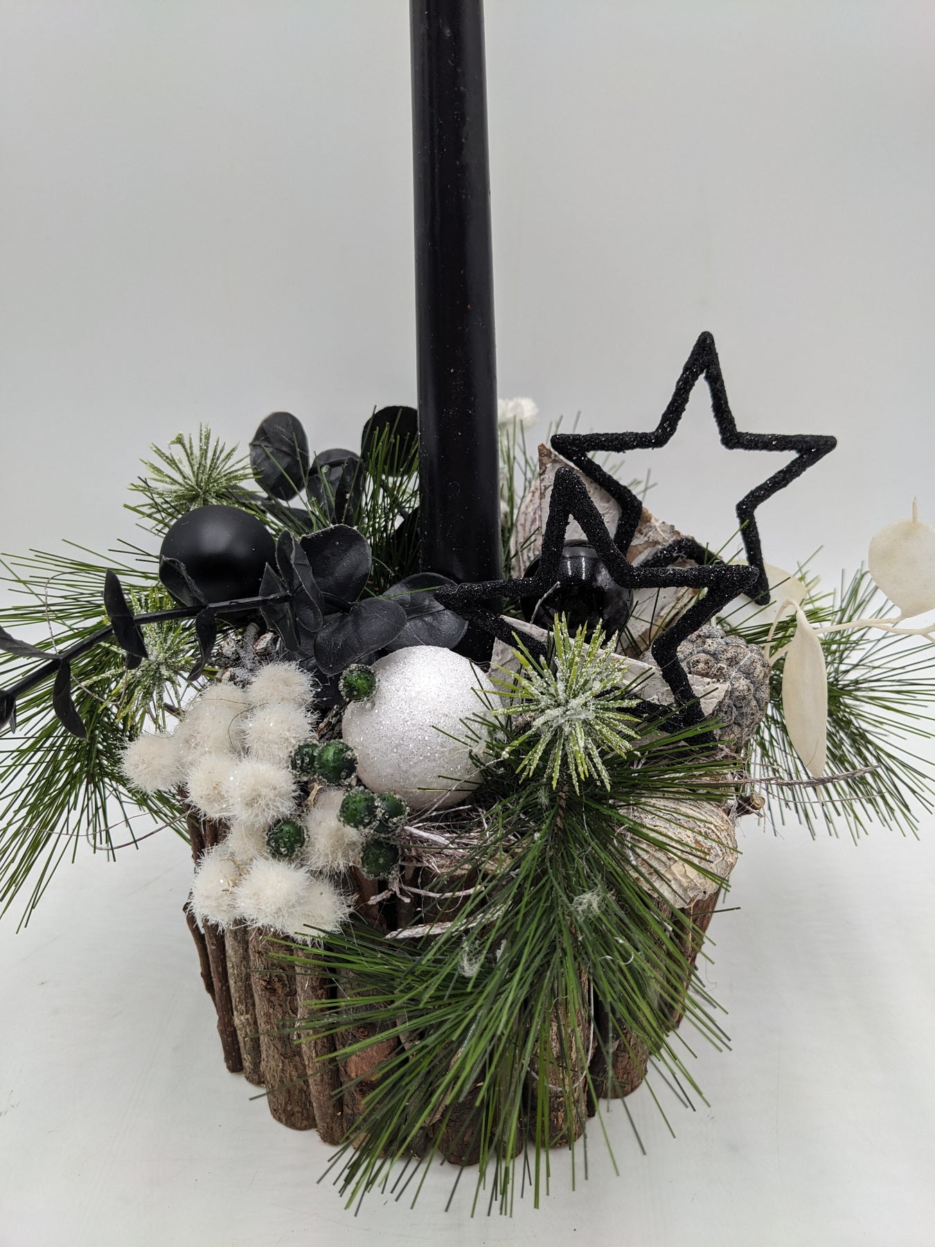Weihnachtsgesteck Kugel Stern Kiefer schwarz