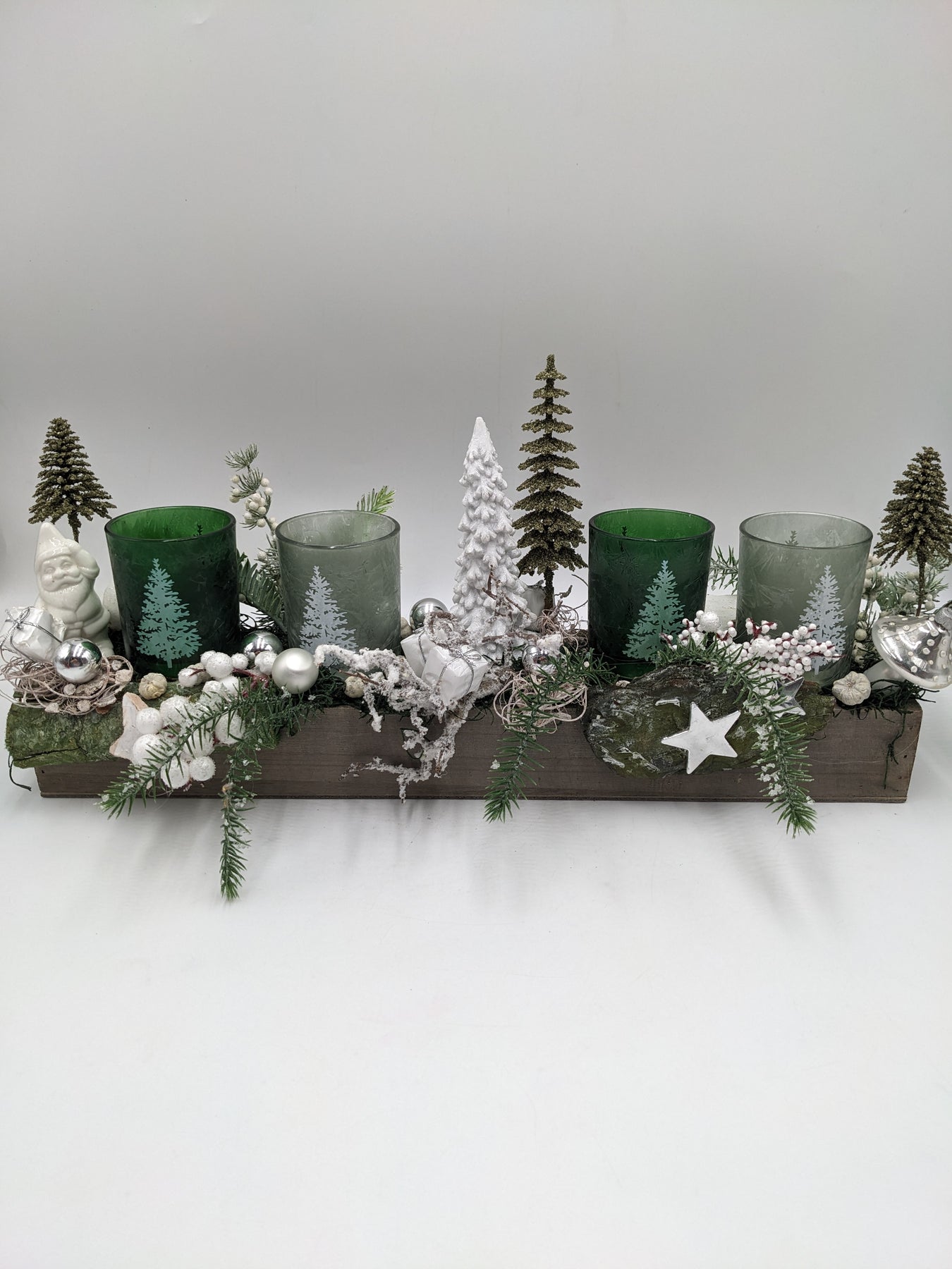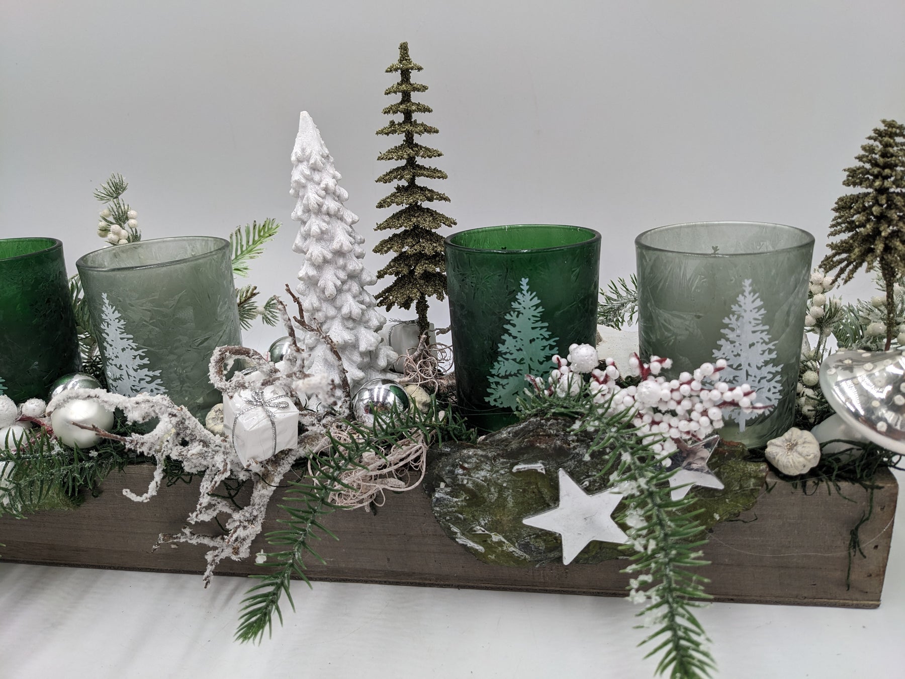 Weihnachtsgesteck Teelicht Pilz Geschenk grün