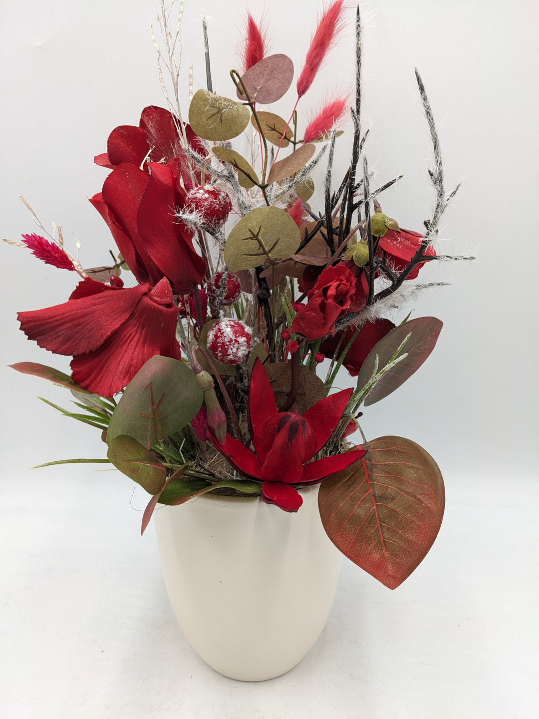 Wintergesteck Alpenveilchen Gräser geeist rot