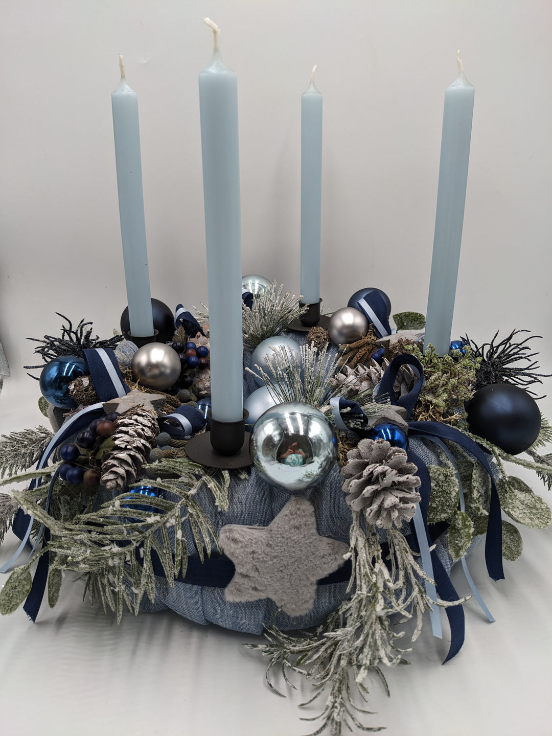 Adventsgesteck Kugel Zapfen Eukalypthus orange