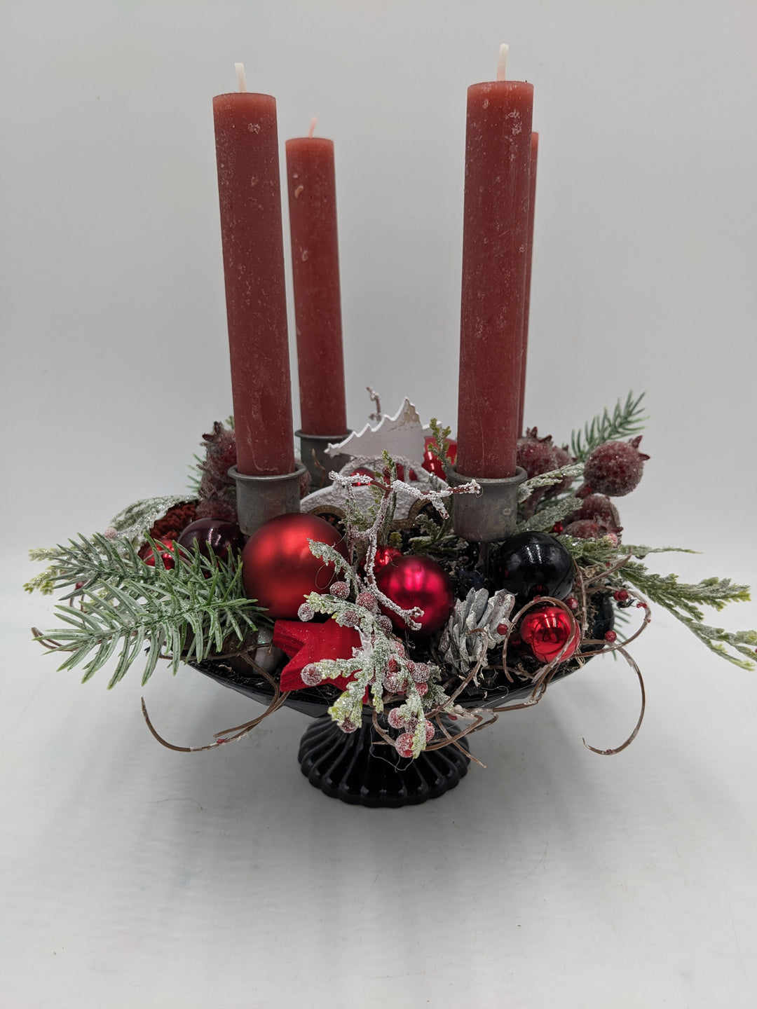 Adventsgesteck Kugel Stern Schaukelpferd rot