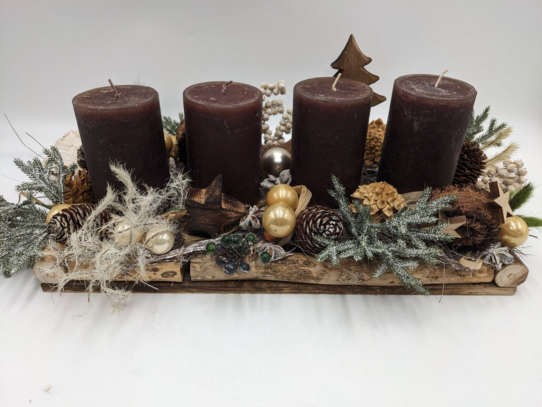 Adventsgesteck Kugel Zapfen Stern braun