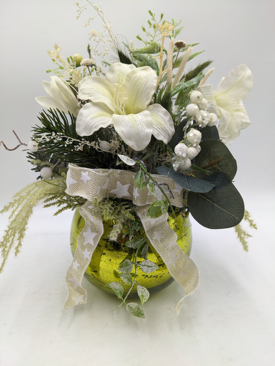 Wintergesteck Schleife Amaryllis grün