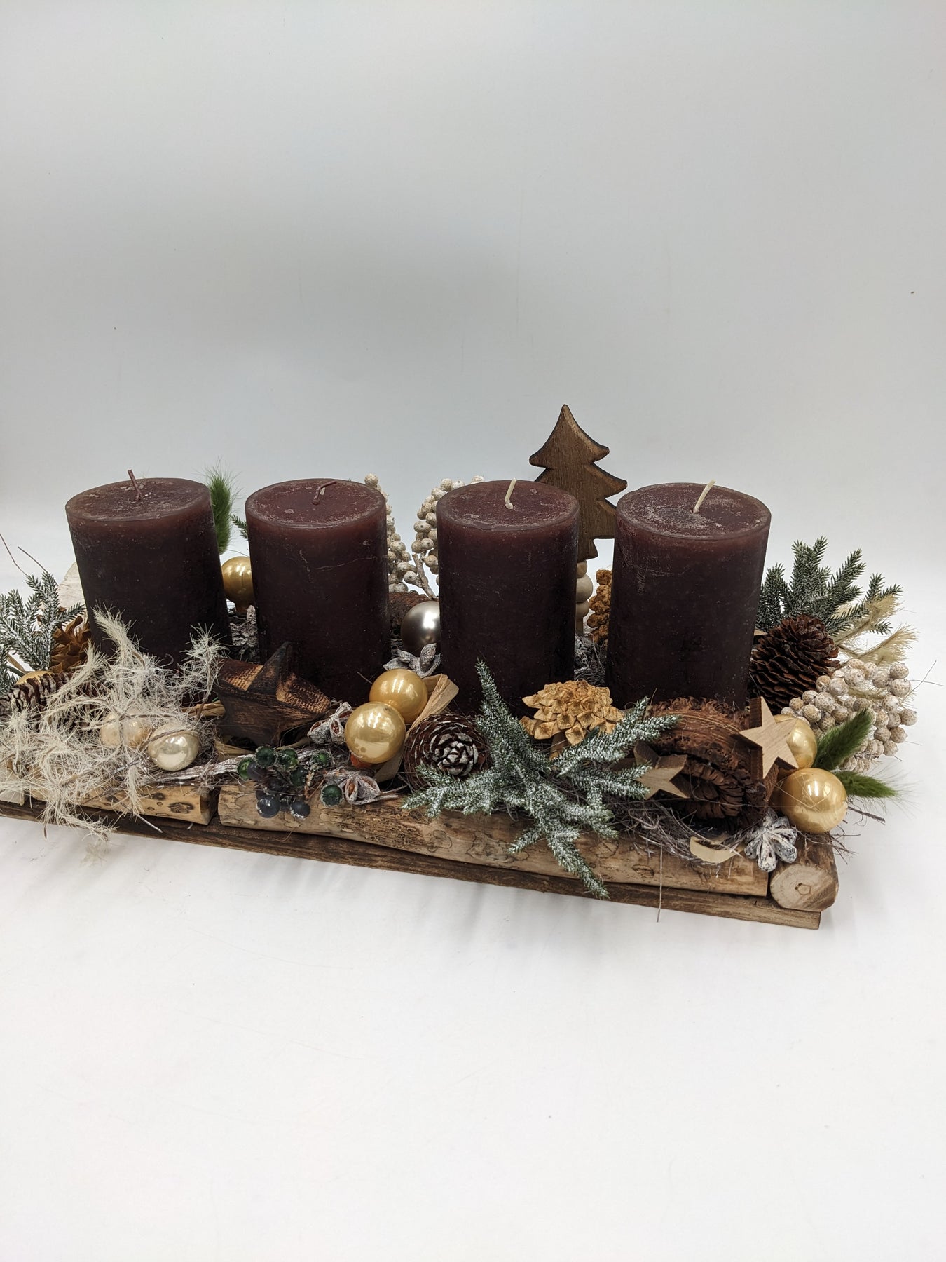 Adventsgesteck Kugel Zapfen Stern braun